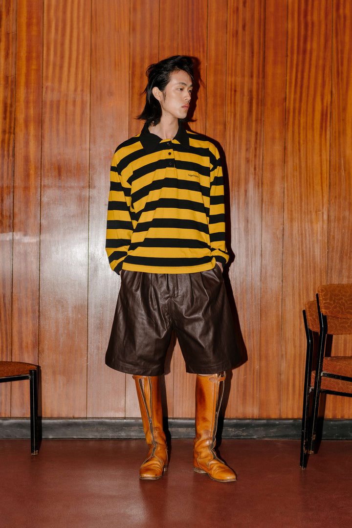 Cut from cotton piqué, sourced from Italian heritage mill: breathable, soft, and made to last. Black and yellow stripes with an embroidered Hanged Empress logo at the chest, finished with a black collar and cuffs for contrast. A hidden heart detail at the back neck is there just for you.