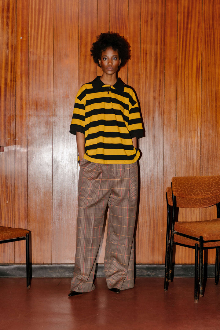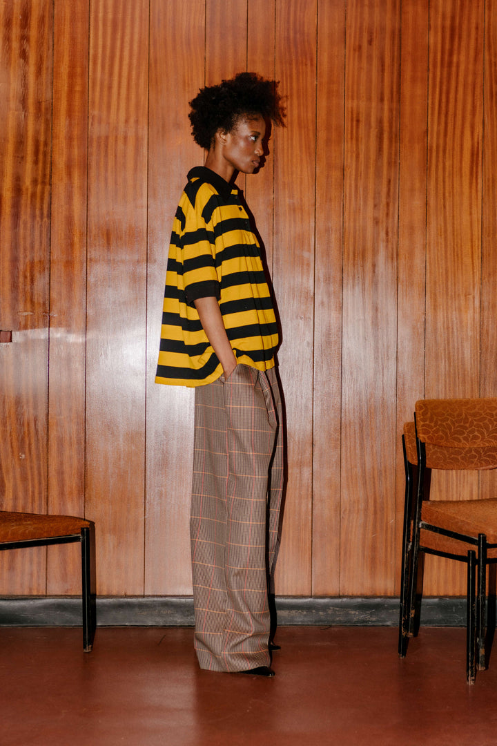Cut from cotton piqué, sourced from Italian heritage mill: breathable, soft, and made to last. Black and yellow stripes with an embroidered Hanged Empress logo at the chest, finished with a black collar and cuffs for contrast. A hidden heart detail at the back neck is there just for you.