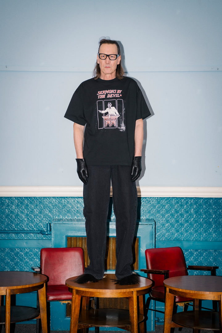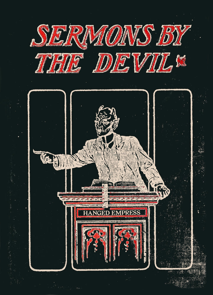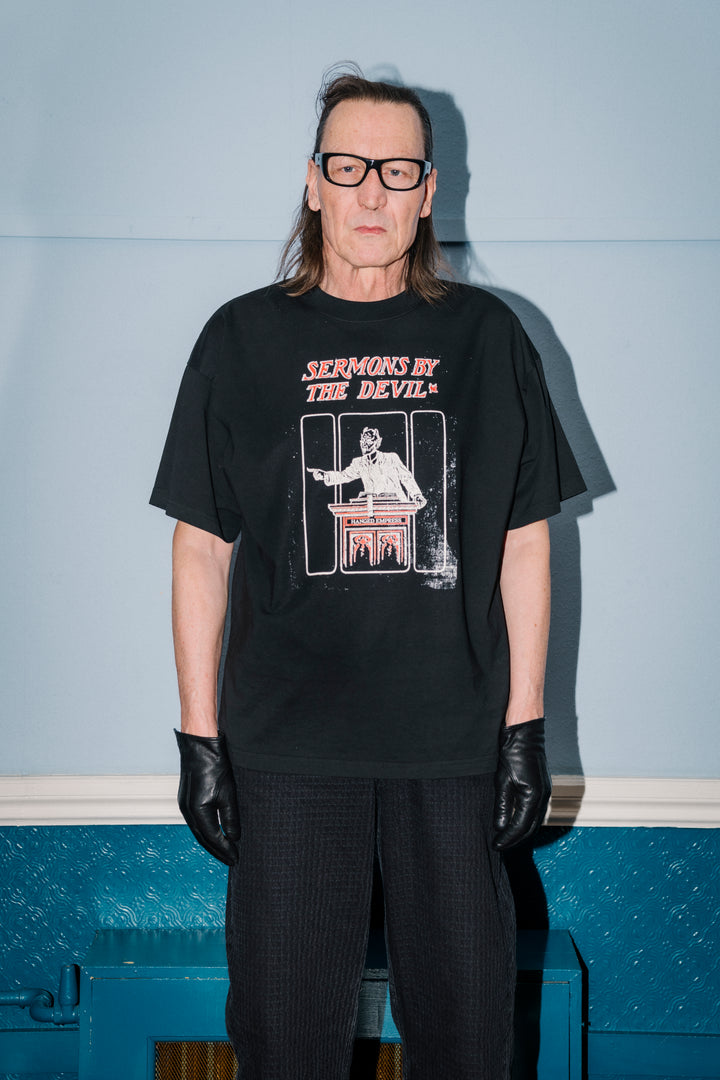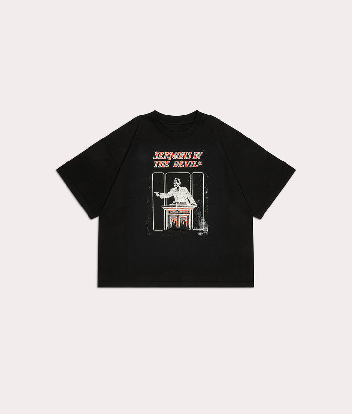 Cut from 230g Italian cotton jersey, heavy, soft, and ready for anything. Garment-washed for that worn-in feel from day one. The vintage-inspired artwork shows the Devil mid-sermon, pointing fingers and probably making some good points, applied with Direct to Garment printing so every line stays sharp through time, sweat, and sin.